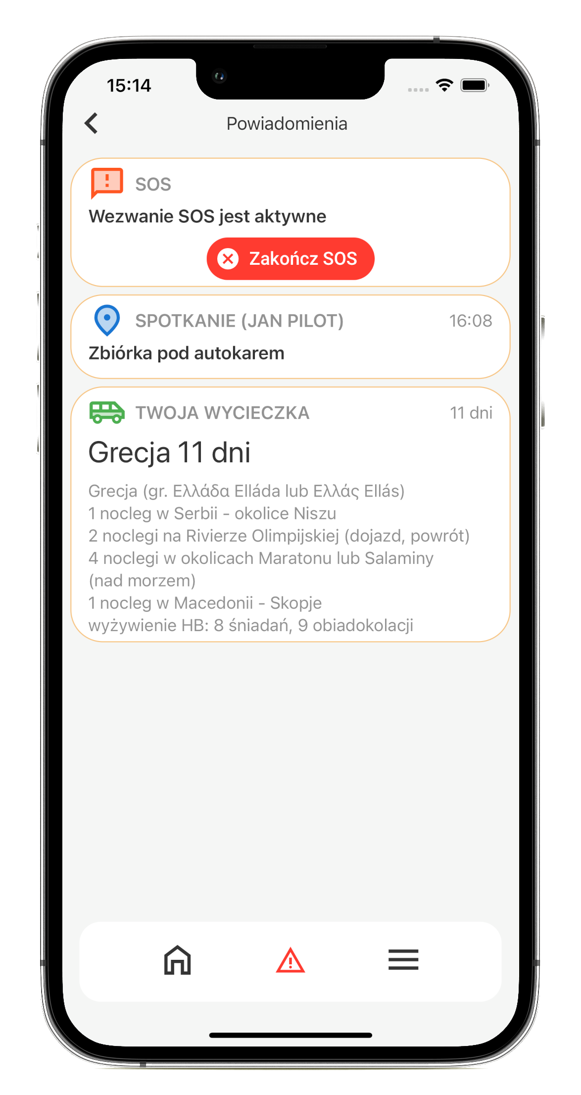 Każdy uczestnik ma na bieżąco aktualizowany harmonogram, dzięki czemu znacznie redukuje się ilość spóźnień i nieporozumień w trakcie wycieczki. Odpowiednio wcześnie wysłany komunikat umożliwi pilotowi sprawne zebranie grupy w określonym miejscu zaznaczonym na mapie i zmniejszy ryzyko oraz odpowiedzialność wynikającą z komunikacji z uczestnikami.